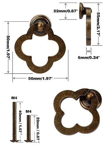 - This antique brass cabinet knobs are made of zinc alloy and will not rust. They are the right size (50mm diameter). not too small. and are available in metric M4 0.7 lengths with 25mm and 40mm screws for most wood panel thicknesses